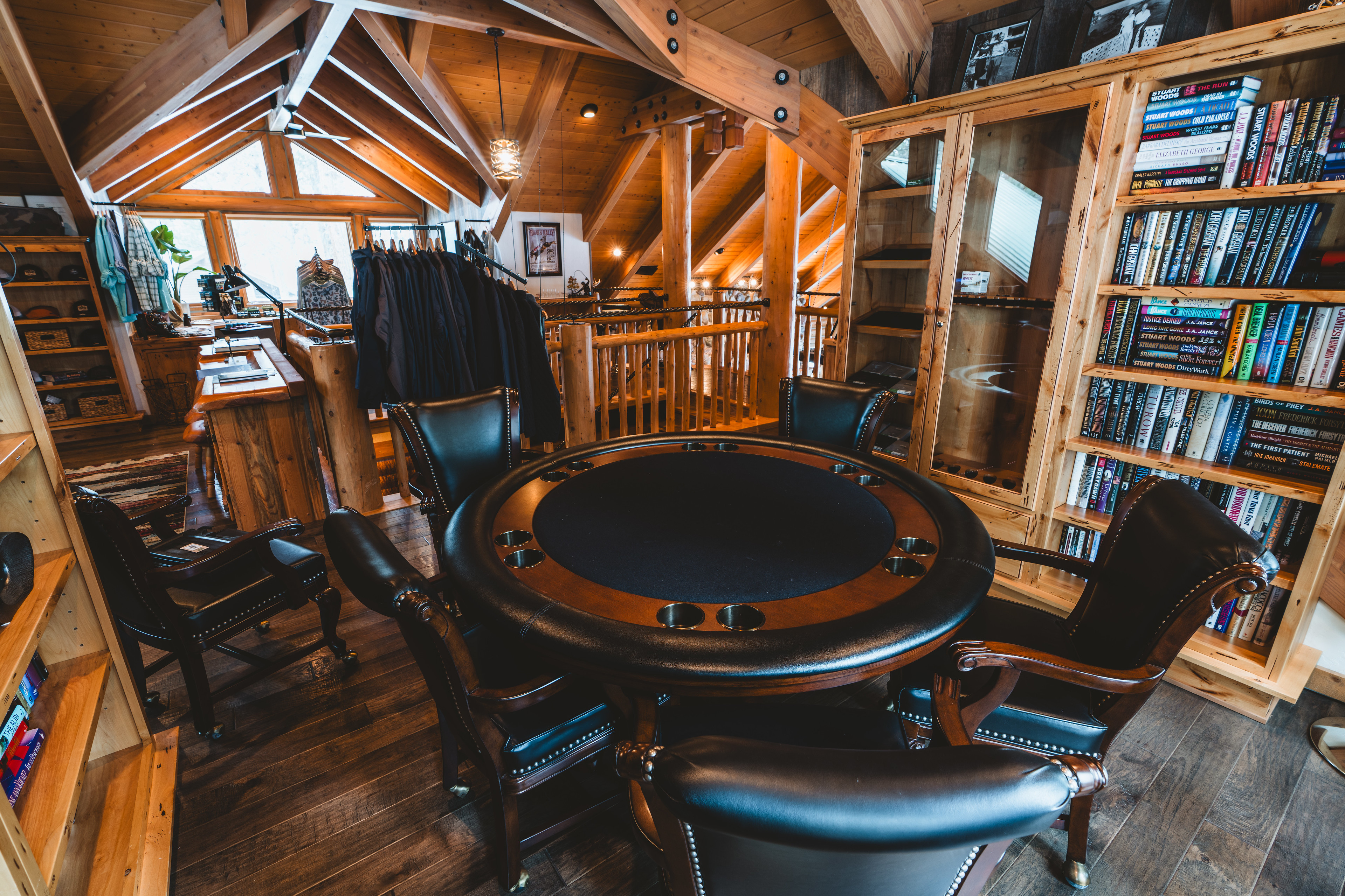 Engage in friendly competition and entertainment at our poker table, a centerpiece for thrilling evenings of fun.